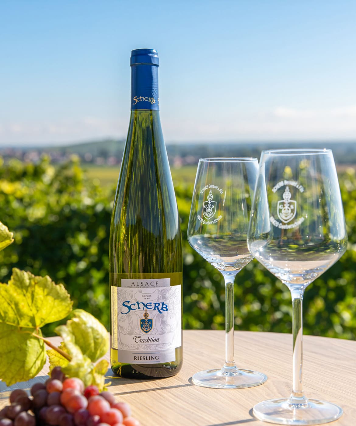 Localizada no coração dos vinhedos da Alsácia, mais precisamente na comuna de Gueberschwihr, centro do Alto Reno, o Domaine Bernard Scherb et Fils é uma propriedade familiar que cultiva uvas há quatro gerações. São mais de 300 anos de experiencia nas encostas íngremes da Alsácia. Para os Scherb: vinho e agricultura são muito mais do que apenas um trabalho, são arte, paixão e história. Os vinhos do Domaine Scherb têm o sabor e o aroma de tudo o que há de belo na natureza e na viticultura da Alsácia.